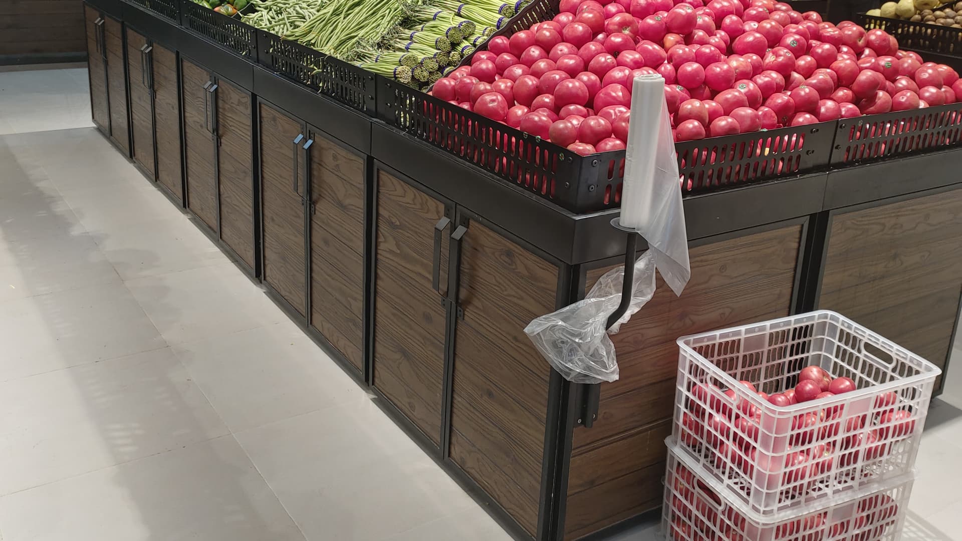 貨架承載:鮮風(fēng)款平堆噴涂款蔬果架